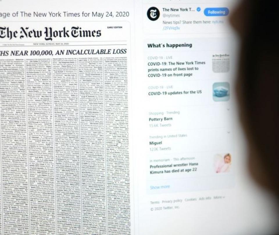 «Las muertes en EE.UU. se acercan a las 100.000, una pérdida incalculable», es el titular con el que The New York Times abre su edición de este domingo.