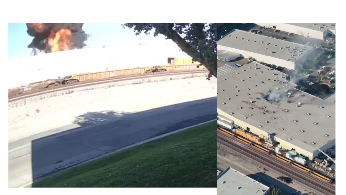 Imágenes difundidas por el canal de televisión KABC-TV muestran una columna de humo negro que se asoma de un agujero en el techo de uno de los varios almacenes del distrito comercial.